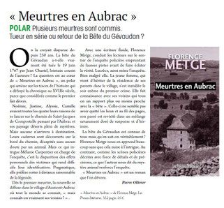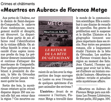 Florence Metge a toujours été intriguée par la bête du Gévaudan. Lors de recherches généalogiques en Lozère, elle a découvert le témoignage de l’abbé Trocellier sur cette mystérieuse affaire. Elle a écrit plusieurs romans revisitant cet épisode à la lumière de notre époque. Avec « Du Gévaudan à Versailles : les deux bêtes », l’auteure fait de l’histoire de la Bête un thriller historique. Elle immerge le lecteur au XVIIIe siècle dans la province du Gévaudan et à la cour du roi Louis XV tout en dévoilant des aspects méconnus et insolites du premier fait divers de l’histoire. Retrouvez toute l’actualité de l’auteure sur Facebook et Babelio.